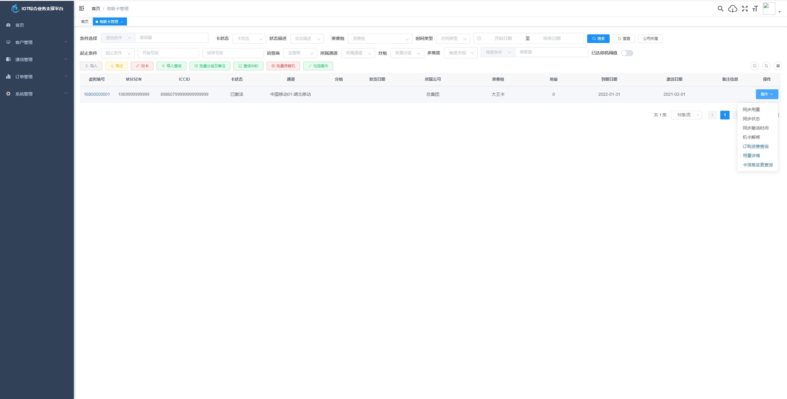 物联网管理系统源码 号卡智能管理平台 轻量级物联网综合业务支撑平台