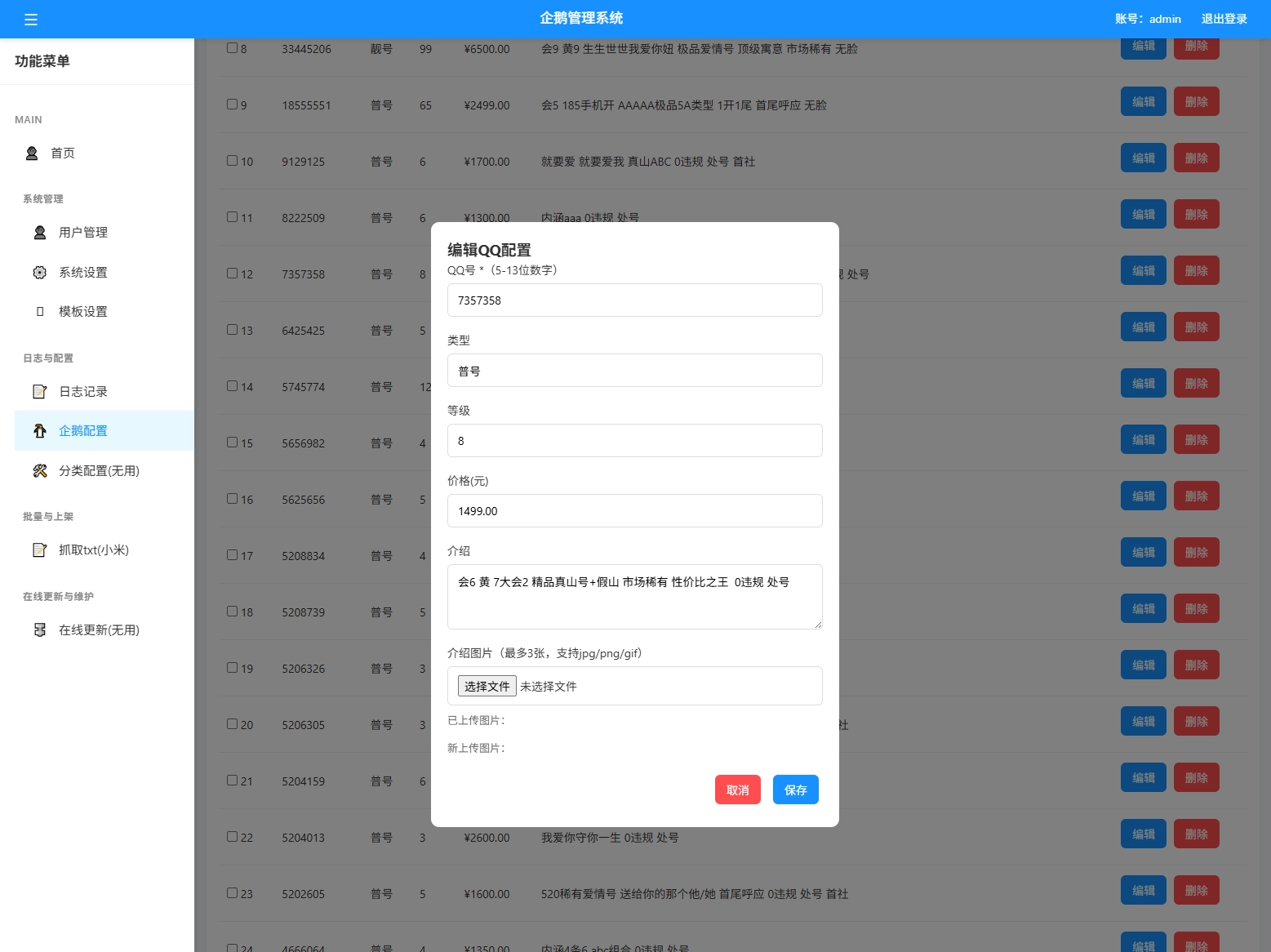详情 评论 问答 文章最后更新时间:2026-01-26 23:34:04简介: 扣扣号码展示网站源码_号码售卖展示系统源码 全开源 带后台 多套首页模板 附教程 适用于企鹅号码展示,也可用于其他靓号的展示用途,如车牌号之类的。感兴趣的自行下载吧 图片: 免费资源扣扣号码展示网站源码_号码售卖展示系统源码 全开源 带后台资源下载夸克网盘点击下载 为这篇文章评分 平均评分 0.0 共0位网友评分 0人 0人 0人 0人 0人 举报该内容 © 版权声明 All Rights Reserved 免责声明:本站提供用户下载的所有资源均来自网络,版权归作者本人所有,仅限学习和研究目的的,请支持正版! 我们非常重视版权问题,如有侵权请邮件与我们联系处理。敬请谅解!邮件:za178239@vip.qq.comTHE END网站源码 喜欢就支持一下吧!点赞5 分享QQ空间微博QQ好友海报分享复制链接收藏 如何下载资源? 您可以通过搜索或浏览分类列表来寻觅您期望下载的资源。随后,点击资源介绍页右侧的下载链接按钮,依据提示信息进行操作即可。 是否需要充值才能下载? 大部分资源可积分免费下载,部分资源须付费才能下载。 下载的资源是否有版权? 本网站提供的下载资源均为网络搜集,仅供个人学习和交流使用。对于版权问题,请用户自行判断并承担相应责任。