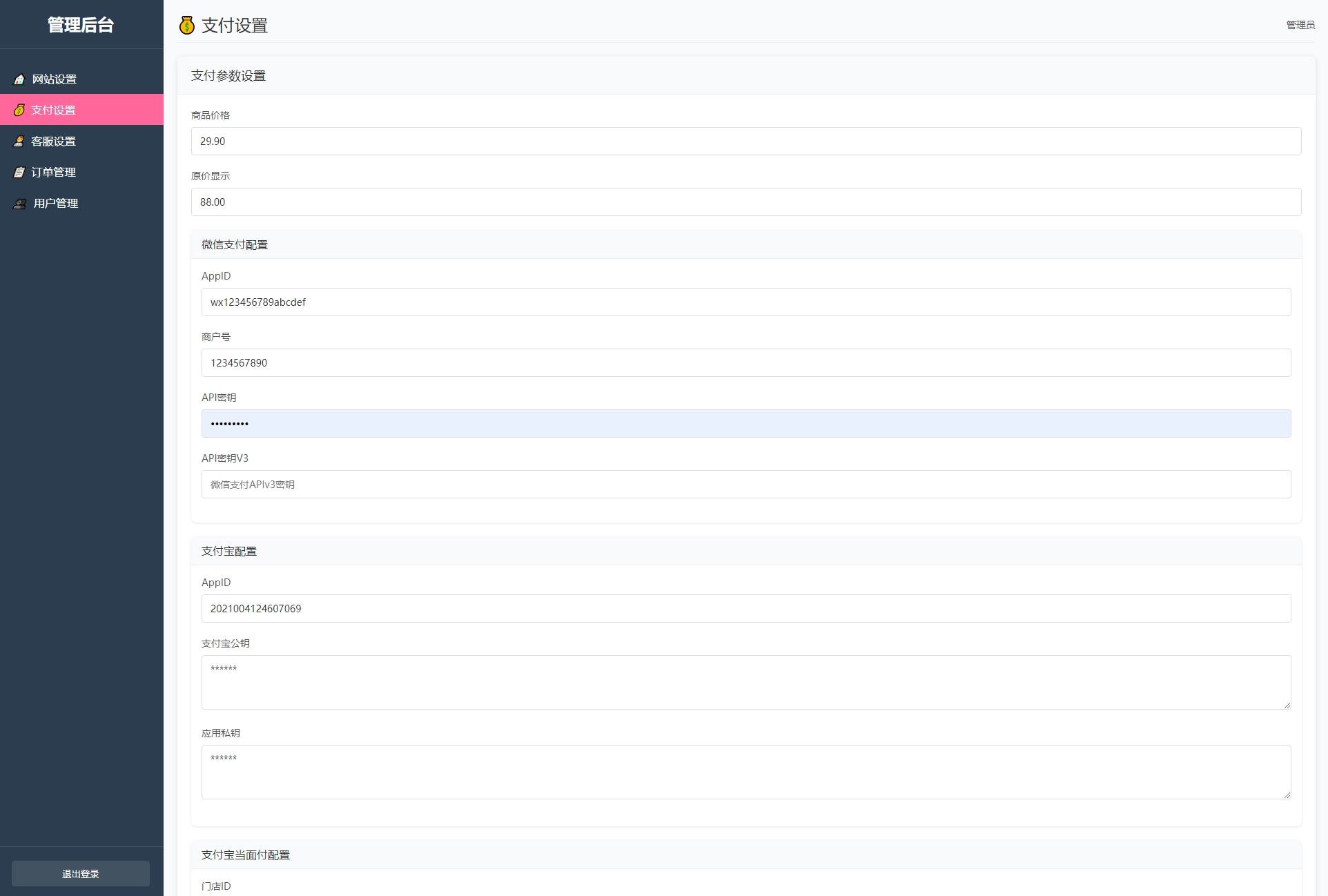后台管理: