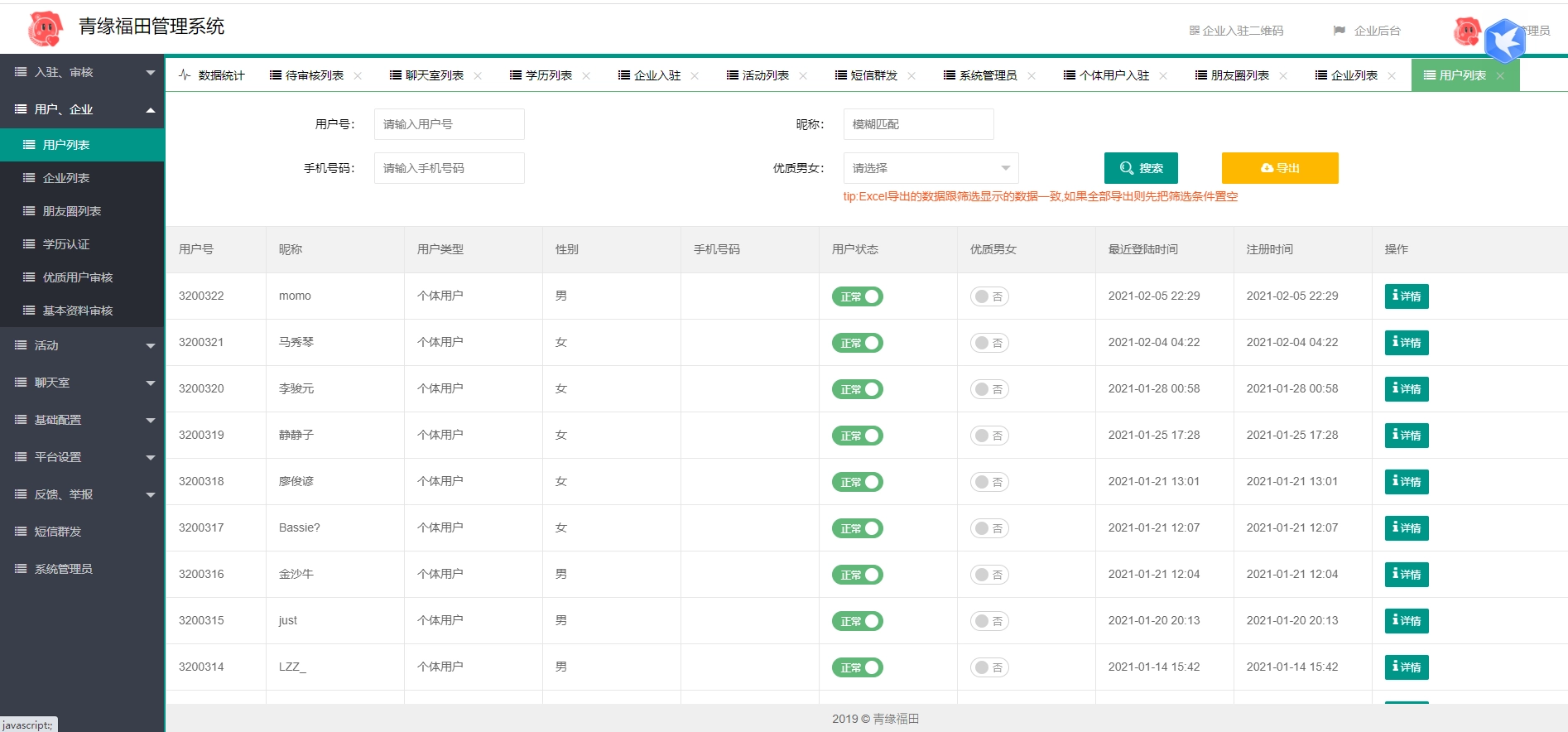 详情 评论 问答 文章最后更新时间:2026-03-01 18:35:45 源码简介: 全新开源红娘交友系统定制版源码|相亲交友小程序源码|可二次开发 定制版红娘交友平台小程序源码,功能很强大的源码,有700多M,带聊天等功能。有兴趣可以下载研究。 源码图片: 全新开源红娘交友系统定制版源码|相亲交友小程序源码|可二次开发此内容为免费资源,请登录后查看M币0 登录查看免费资源 为这篇文章评分 平均评分 0.0 共0位网友评分 0人 0人 0人 0人 0人 © 版权声明 All Rights Reserved 免责声明:本站提供用户下载的所有资源均来自网络,版权归作者本人所有,仅限学习和研究目的的,请支持正版! 我们非常重视版权问题,如有侵权请邮件与我们联系处理。敬请谅解!邮件:za178239@vip.qq.comTHE END网站源码 喜欢就支持一下吧!点赞3 分享QQ空间微博QQ好友海报分享复制链接收藏 如何下载资源? 您可以通过搜索或浏览分类列表来寻觅您期望下载的资源。随后,点击资源介绍页右侧的下载链接按钮,依据提示信息进行操作即可。 是否需要充值才能下载? 大部分资源可积分免费下载,部分资源须付费才能下载。 下载的资源是否有版权? 本网站提供的下载资源均为网络搜集,仅供个人学习和交流使用。对于版权问题,请用户自行判断并承担相应责任。